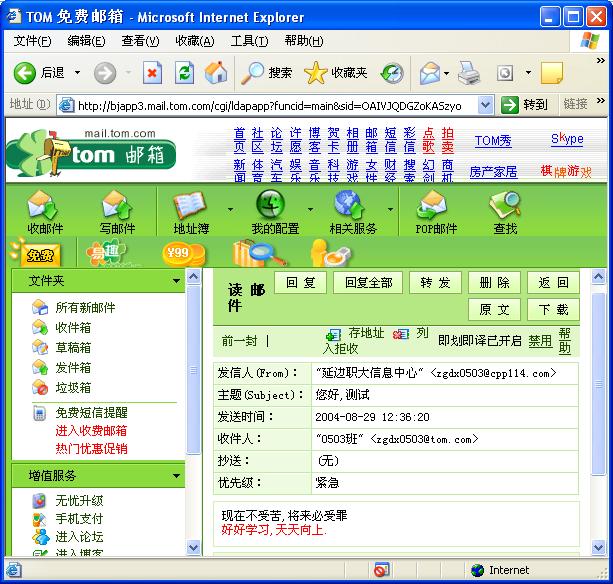 3、運(yùn)行并輸入測(cè)試信箱zgdx0503@tom.com,(密碼:123456)。如下所示: