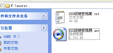 它會(huì)在F盤(pán)下新建一個(gè)名為“secret.”的文件夾,哈,這一個(gè)文件就是那一個(gè)“有鬼”的目錄了-可以把任何文件放到里面去。