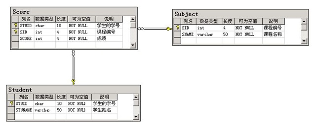 三張表的關(guān)系為: