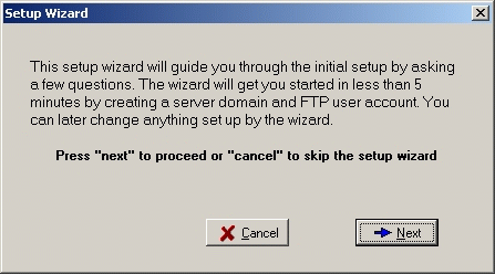 2、打開(kāi)Serv-U管理器。選上圖的“Serv-U Administrator”,即出現(xiàn)“Setup Wizard”(設(shè)置向?qū)В?。此向?qū)Э梢詭湍爿p松地完成基本設(shè)置,因?yàn)榻ㄗh使用它。直接選“Next”(下一步)。如下圖: