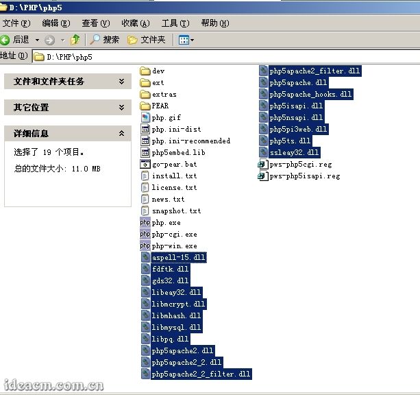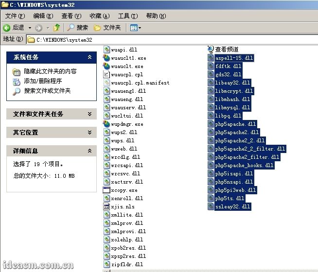 3.1.2、再將D:\PHP\php5目錄下的所有dll文件復(fù)制到C:\windows\system32下(Windows2000系統(tǒng)為C:\winnt\system32,下同),如果已經(jīng)有若干同名文件存在,覆蓋即可。【圖三、四所示】
