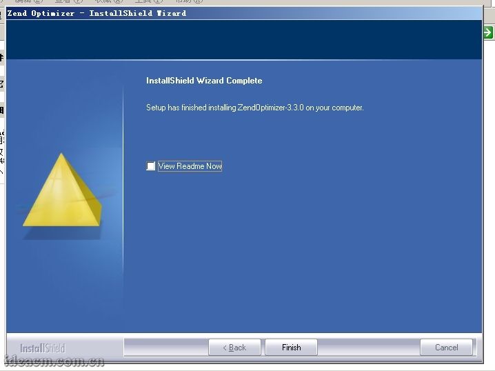 3.5.10、整個(gè)zend安裝過程完成,去掉“View Readme Now”查看說明文件前面的勾,點(diǎn)擊[Finish]按鈕,完成安裝。【圖五十九所示】