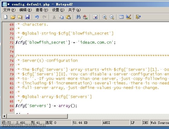3.6.8、 查找:$cfg['blowfish_secret'] = '';