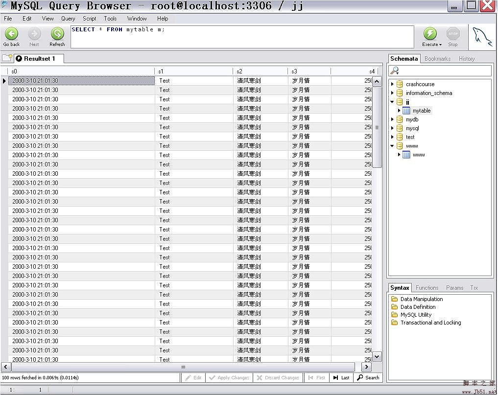 //我修改之,能正常運(yùn)行,測(cè)試環(huán)境為mysql5.0,xp