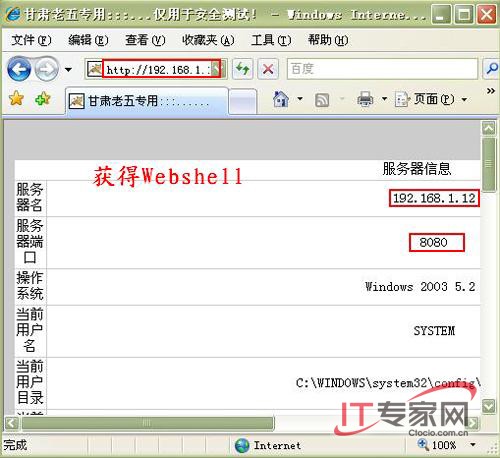 在Tomcat的后臺有個WAR file to deploy模塊,通過其可以上傳WAR文件。Tomcat可以解析WAR文件,能夠?qū)⑵浣鈮翰⑸蓋eb文件。我們將一個jsp格式的webshell用WinRar打包然后將其后綴改名為WAR(本例為gslw.war),這樣;一個WAR包就生成了。最后將其上傳到服務器,可以看到在Tomcat的后臺中多了一個名為/gslw的目錄,點擊該目錄打開該目錄jsp木馬就運行了,這樣就獲得了一個Webshell。(圖2)