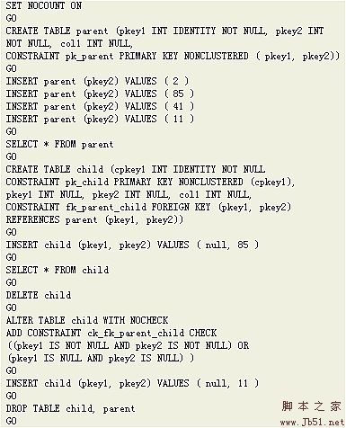 GOINSERT Child (Parentpkey1, col1) VALUES (null,2)GO