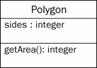 首先考慮Polygon類。哪些屬性和方法是必需的?首先,一定要知道多邊形的邊數(shù),所以應(yīng)該加入整數(shù)屬性sides。還有什么是多邊形必需的?也許你想知道多邊形的面積,那么加入計(jì)算面積的方法getArea()。圖4-3展示了該類的UML表示。