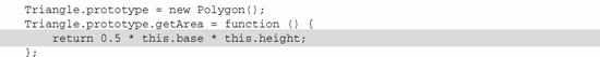 在用原型鏈繼承方法后,Triangle將覆蓋getArea()方法,提供為三角形面積定制的計(jì)算。
