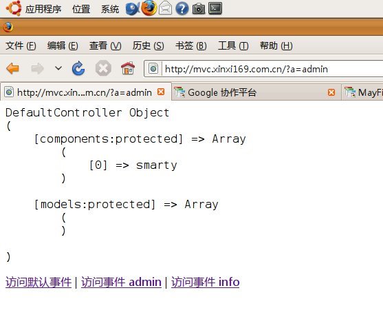 echo '<a href="/">訪問(wèn)默認(rèn)事件</a> | <a href="?a=admin">訪問(wèn)事件 admin</a> | <a href="?a=info">訪問(wèn)事件 info</a>';