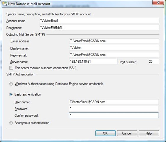 1.打開SQL Management Studio->Management->Database mail->Configure SMTP Settings