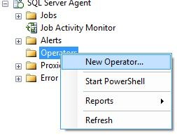 2.打開SQL Server Agent->Operators->建立一個(gè)新的Operator