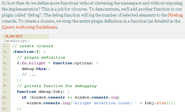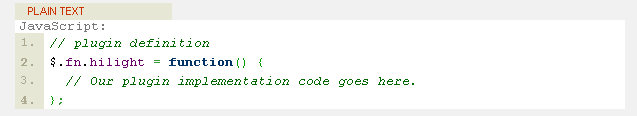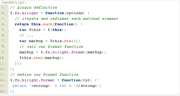 這個條款和上面的相仿,能很有趣的讓你的Plugin有擴展功能。例如:在lilight的plugin中我們能夠定義一個function是format,可以定義hilight的text的形式。我們的plugin代碼將會顯示如下: