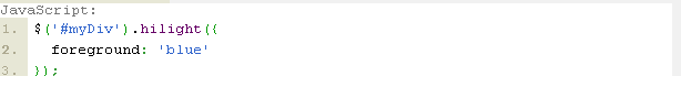 讓我們先為我們的hilight插件明確一下foreground和background的顏色。我們應該能夠允許這兩個option作為option對象傳遞給plugin的主函數(shù)。例如: