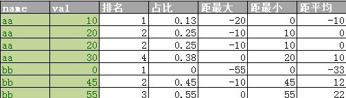 , 占比 = cast (val * 1.0 / sum (val )over (partition by name ) as decimal (2 , 2 ))