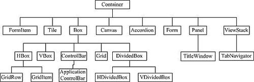 Flex從控件的功能上大致提供了兩種方法:容器(控制布局),組件(提供