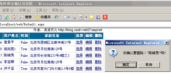 鼠標(biāo)移到GridView某一行時(shí)改變?cè)撔械谋尘吧椒ㄒ?BR>鼠標(biāo)移到GridView某一行時(shí)改變?cè)撔械谋尘吧椒ǘ?BR>GridView實(shí)現(xiàn)刪除時(shí)彈出確認(rèn)對(duì)話(huà)框