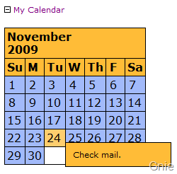 效果1. 當(dāng)鼠標(biāo)放在某日上時(shí),如果當(dāng)天有備忘錄,則會(huì)顯示出來,如下圖: