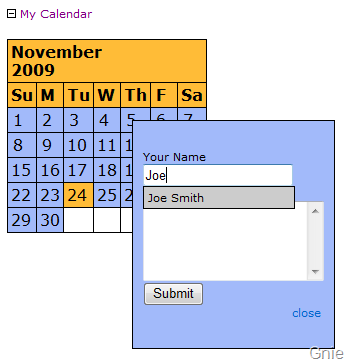 效果2. 當(dāng)鼠標(biāo)點(diǎn)擊某日錄入姓名時(shí),系統(tǒng)會(huì)自動(dòng)檢索姓名是否存在,并可以通過選擇填入姓名框中,如圖: