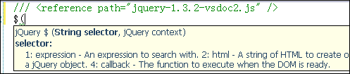 vsdoc: 在Visual Studio中需要引入此版本的jquery類庫(kù)才能啟用智能感知.如:jquery-1.3.2-vsdoc2.js