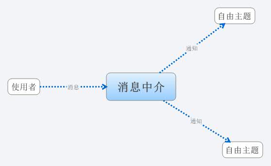 從圖中我們可以知道,會(huì)使用到一個(gè)中介專門去接收使用者的信息,再發(fā)送到相應(yīng)的展示主題,這樣我們就可以解決了展示方式不段改變的問(wèn)題,如何去展示就是展示主題代碼問(wèn)題了。