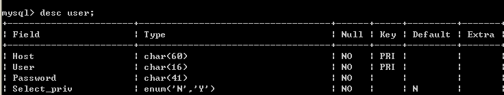 在MySQL的系統(tǒng)數(shù)據(jù)庫(kù)mysql的user表中,有一個(gè)名為Password的列,其中保存由password函數(shù)加密后的user的密碼數(shù)據(jù)。如下所示: