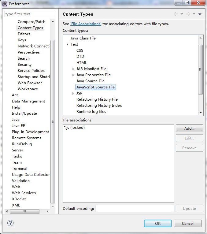 同樣的將JavaScript source file和JSP的Default encoding設(shè)置為UTF-8(這里應(yīng)當(dāng)與jsp中的編碼相同,這樣以后的項(xiàng)目就都是utf-8的編碼了,推薦使用這個(gè))