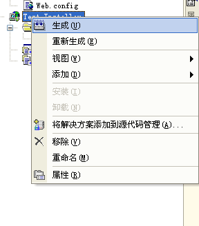 1. 在“文件系統(tǒng)編輯器”中,選擇“Web 應(yīng)用程序文件夾"。在“操作”菜單上,指向“添加”,然后選擇“項目輸出”。(圖1-4)