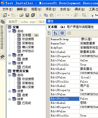 6. 在“屬性”窗口中,選擇 BannerText 屬性并鍵入:安裝數(shù)據(jù)庫.。