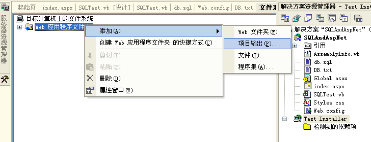 三。將 VbNetTest項目的輸出添加到部署項目中(假如你的虛擬目錄是SQLANDASPNet)