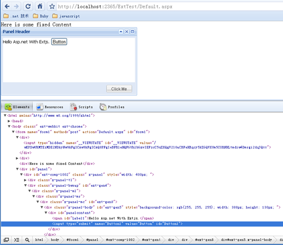 Panel還具有一個(gè)ContentEl屬性,可以加載本頁(yè)面上的dom節(jié)點(diǎn)。這種方法也能和asp.net服務(wù)器控件結(jié)合使用,對(duì)Default.aspx稍加修改:
