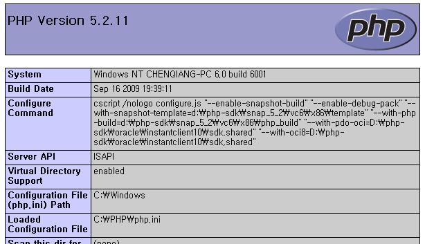 把php-5.2.11-Win32.zip下載回來(lái)之后,把里面的文件解壓到C:\php目錄下(或者是D盤(pán)E盤(pán)也都行,只是我習(xí)慣放C盤(pán))。