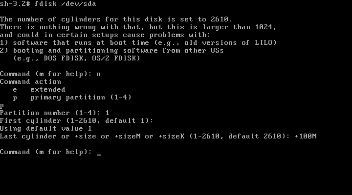 按Alt+F2切換到控制臺(tái) 創(chuàng)建boot分區(qū)