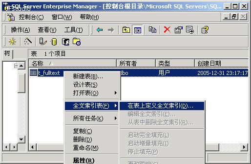 11: 在企業(yè)管理器中右擊 f_fulltext 表,如 圖11 所示,選中“更新后臺中的索引”。