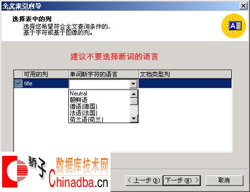 其它代碼所表示的語言可以查閱Book Online的“default full-text language”關(guān)鍵詞。