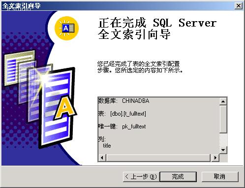 到本步,全文索引就完全完成了。由于我們選中了“更改跟蹤”,此時實際已經(jīng)開始了表的完全填充。