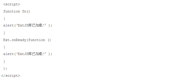在ExtJS庫文件及頁面內(nèi)容加載完后,ExtJS會執(zhí)行Ext.onReady中指定的函數(shù),因此可以用,一般情況下每一個(gè)用戶的ExtJS應(yīng)用都是從Ext.onReady開始的,使用ExtJS應(yīng)用程序的代碼大致如下: