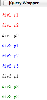 $創(chuàng)造了一個p元素的包裝元素,這個包裝元素和用上文提到的選擇符選到的元素是一樣的。同樣也可以調(diào)用jQuery的一些方法,最后用appendTo(以后介紹)把這個元素移動到div里。最終結(jié)果是: