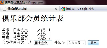 echo "等級:白金會(huì)員 人數(shù):".$row['num']."<br />";