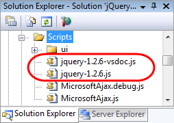 例,下載jquery-1.2.6.js和jquery-1.2.6-vsdoc.js,