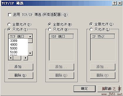 有時候服務器為了安全只允許訪問的端口加到TCP/IP篩選里面,其它的端口將無法訪問。這里的代碼就是為了這樣的功能實現(xiàn)。