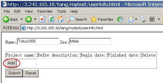 本文,我將以一個(gè)類似的例子來(lái)做一個(gè)前臺(tái)用Javascript動(dòng)態(tài)添加數(shù)據(jù)項(xiàng),后臺(tái)保存到數(shù)據(jù)庫(kù)的例子。