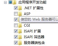 2.在打開(kāi)的Windows功能窗口中依次展開(kāi)Internet信息服務(wù)→萬(wàn)維網(wǎng)服務(wù)→應(yīng)用程序開(kāi)發(fā)功能,將“服務(wù)器端包含”選項(xiàng)前面的勾勾上,確定安裝即可。 實(shí)在不能理解,你就都勾上吧 呵呵