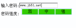 這款密碼強度實時驗證代碼比較實用啊, 也比較簡單,通過對輸入字符串的判斷,得知密碼的強度。