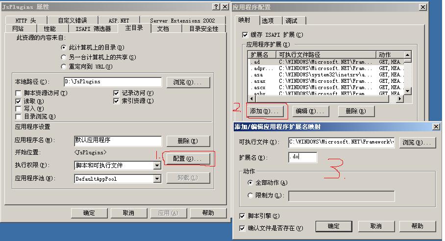 demo程序中還少一個(gè)script.do文件,并且還需要在IIS中配置“.do”的應(yīng)用程序擴(kuò)展,方法如下:在IIS中選擇所建的網(wǎng)站,右鍵單擊“屬性”如下圖: