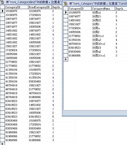 每個(gè)分類在tomi_CategoryBind有完整的目錄結(jié)構(gòu)。。一個(gè)分類在tomi_CategoryBind的記錄數(shù)等于他在tomi_Category的depth值。