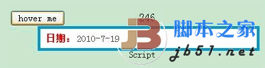 <input type="button" value="hover me" onmouseover='ToolTip.ShowTip(this,"<b>日期:</b>2010-7-19");' onmouseout='ToolTip.HideTip();' style="margin:200px 100px;" />