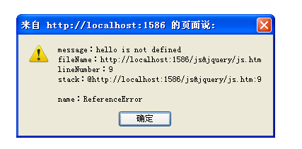 alert("不好意思,出錯了:\n錯誤提示:"+message+"\nUrl:"+url+"\n行號:"+line);