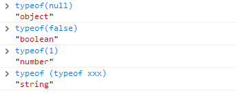 既然object包含Arrays、Functions、Numbers、Objects……,那怎么區(qū)分這些呢?答案是typeof。 typeof返回一個(gè)字符串,如typeof(Null) = “object”,typeof(false) = “Boolean”, typeof(1) = “number”。既然總是返回字符串,那么對于typeof (typeof x),不管x是什么,總是返回”string”。