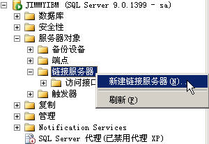 1.展開服務(wù)器對象-->鏈接服務(wù)器-->右擊"新建鏈接服務(wù)器"