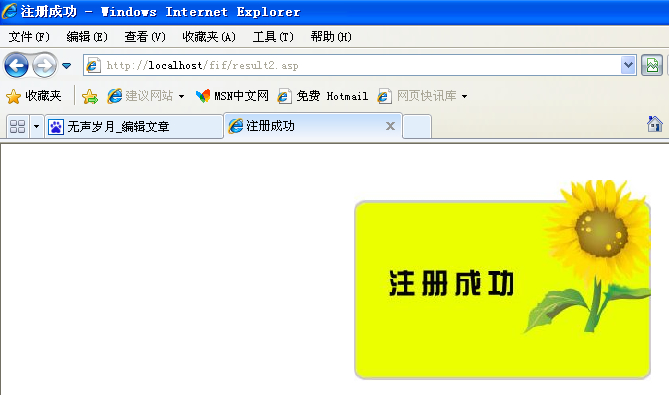 四、建立接收register.asp中發(fā)送過來的表單數(shù)據(jù),并插入到數(shù)據(jù)表user中的注冊(cè)成功顯示頁面:result2.asp代碼如下: